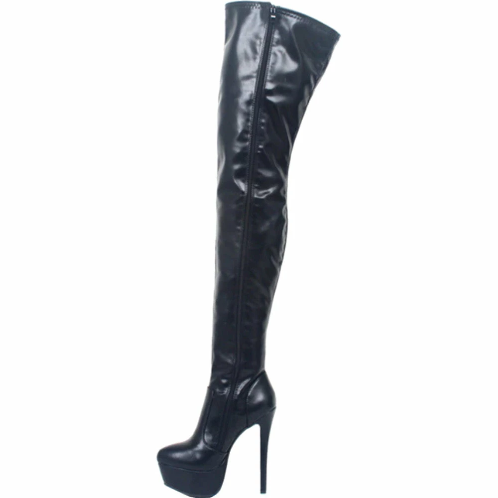 These boots are incredibly sexy, with their thigh-high cut and thin heels. They come in classic black, which you can pair with anything, and are guaranteed to make you look stunning every time you’re wearing them. This product has a platform design, a shoe style that doesn’t go out of fashion. Each of the shoes has a toe cap and a heel cup, not only for aesthetic reasons but also for increased support. The height of the heels varies according to the shoe size for symmetrical balance. These shoes have long side zippers for quick and easy access.