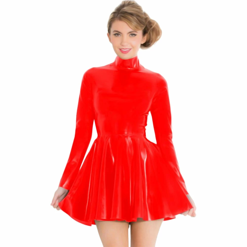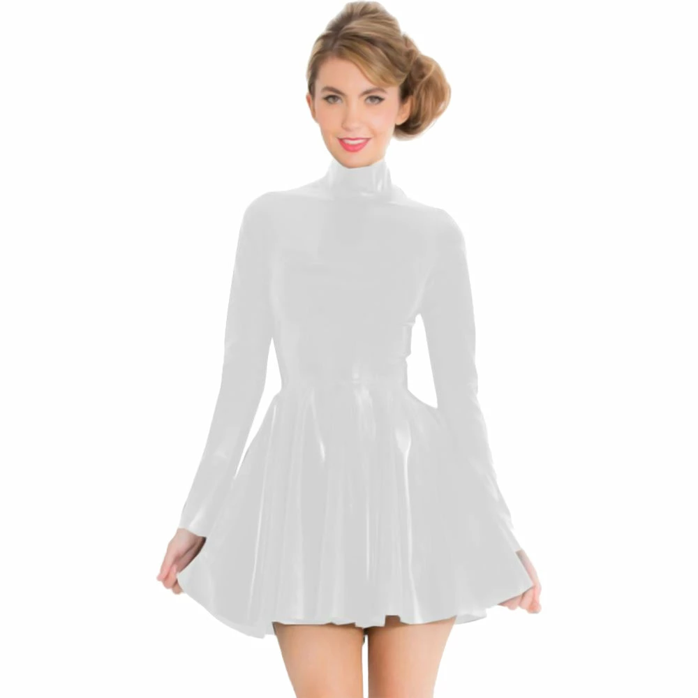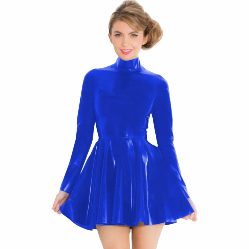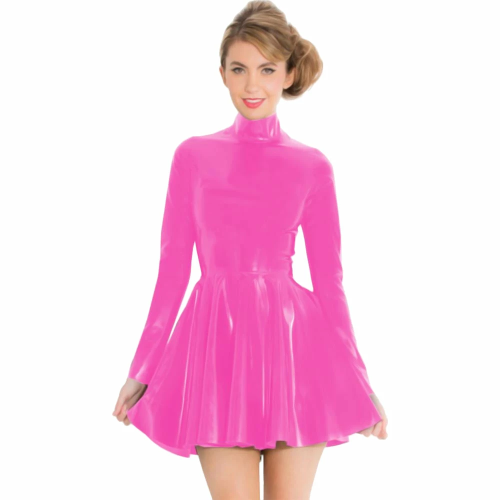 Entice men more by using this high-quality PVC dress that comes in 12 lively and vibrant colors. It’s a turtleneck dress with long sleeves and a high-cut skirt. It’s so glassy as hell that even if you use it at night, it will still glow up as it reflects the lights striking it. Roll up your skirt very with ease with its smooth-flowing hem, and protrude those plump breasts with its skin-tight top.
