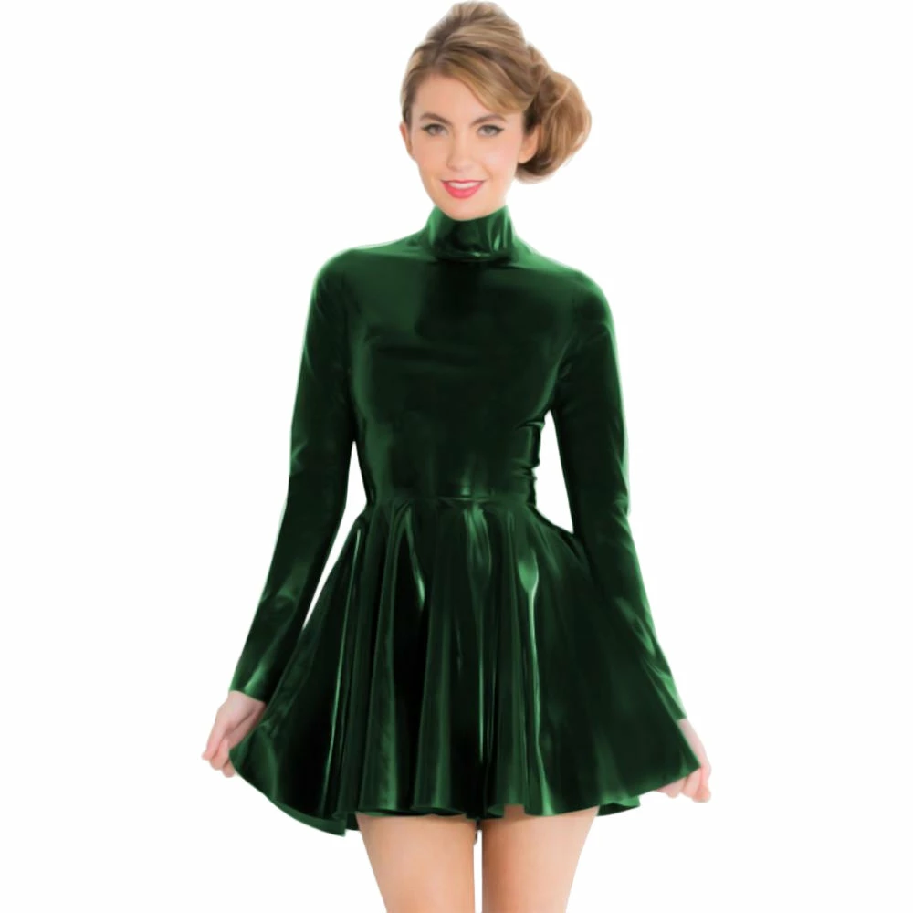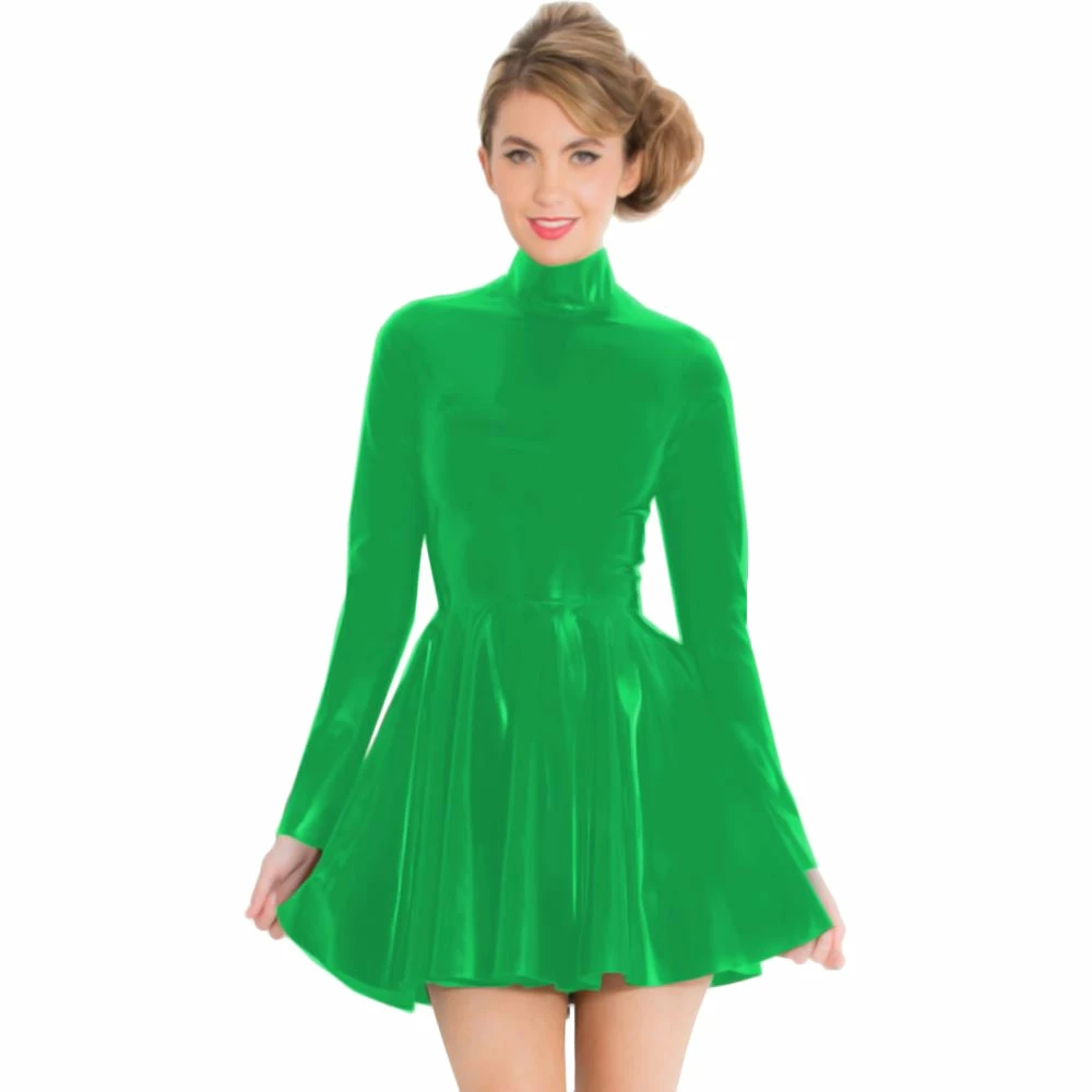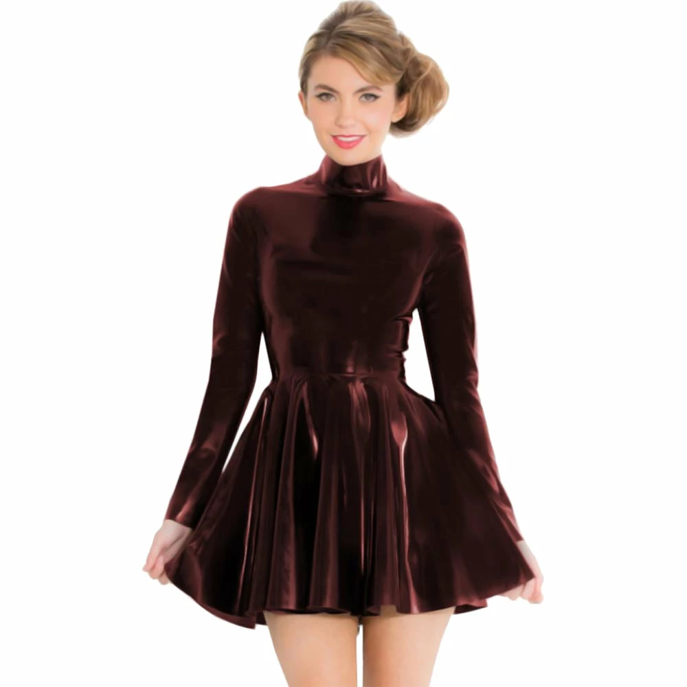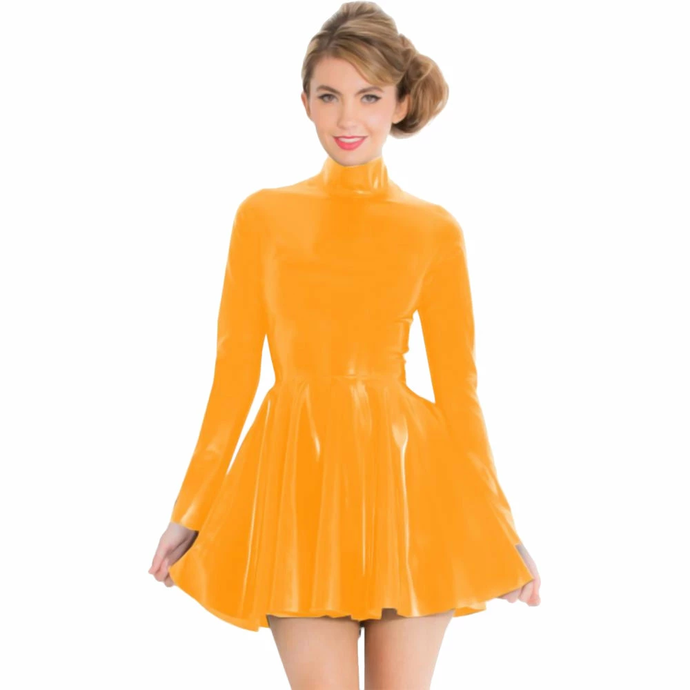Entice men more by using this high-quality PVC dress that comes in 12 lively and vibrant colors. It’s a turtleneck dress with long sleeves and a high-cut skirt. It’s so glassy as hell that even if you use it at night, it will still glow up as it reflects the lights striking it. Roll up your skirt very with ease with its smooth-flowing hem, and protrude those plump breasts with its skin-tight top.