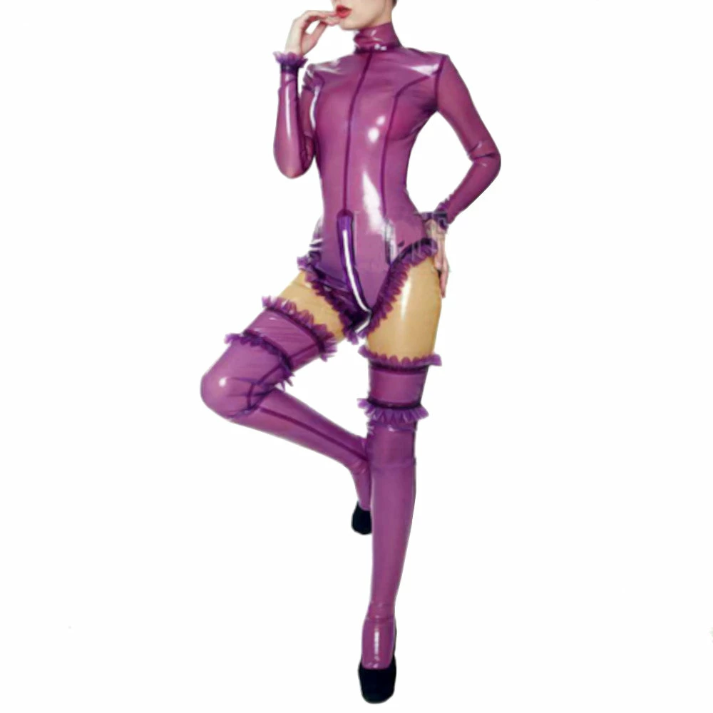 Whoever says latex bodysuits are boring due to lack of adornments hasn’t gotten the chance to get one with style. So if you are looking for something out of the ordinary, then you should try this Frilly and Fabulous Purple Latex Suit with Stockings.