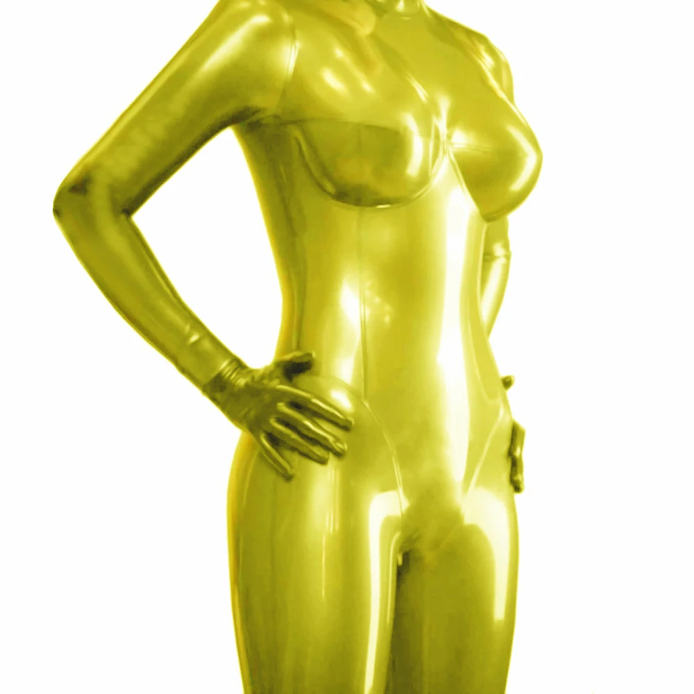 All pieces are glued securely and neatly, so you won’t have to worry about it being ill-fitting on your lover. This suit leaves nothing uncovered—including her legs and toes. Socks are attached to the suit’s leg openings to forbid any access to sensual stimulation.