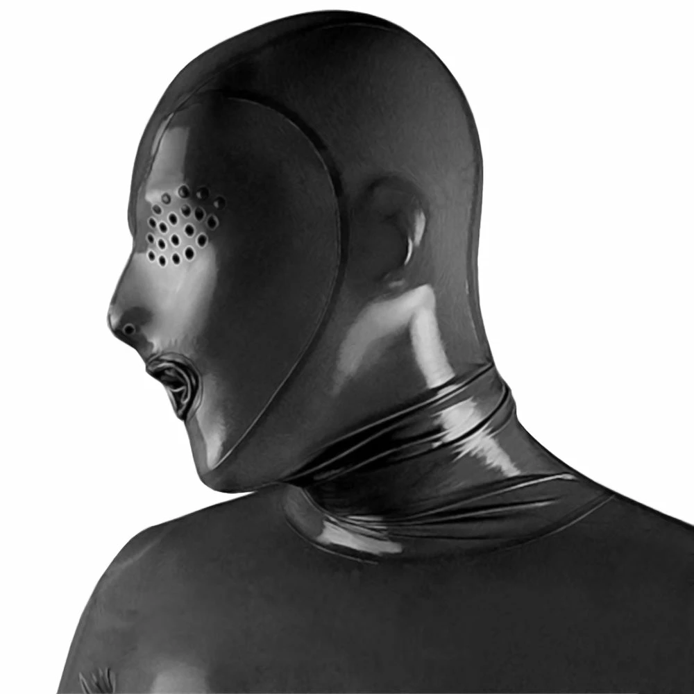 This mask is made of top-notch quality latex, a very stretchable and tight-fitting material that dominates the world of BDSM. The hood covers your Sub’s entire head and his neck, depriving him of any sensual stimulation on some of his sensitive erogenous zones. This item is meticulously crafted, and it is evident in how its parts are joined together, piece by piece. The rawness of the design creates an industrial vibe, fit for your boy toy’s stamina.
