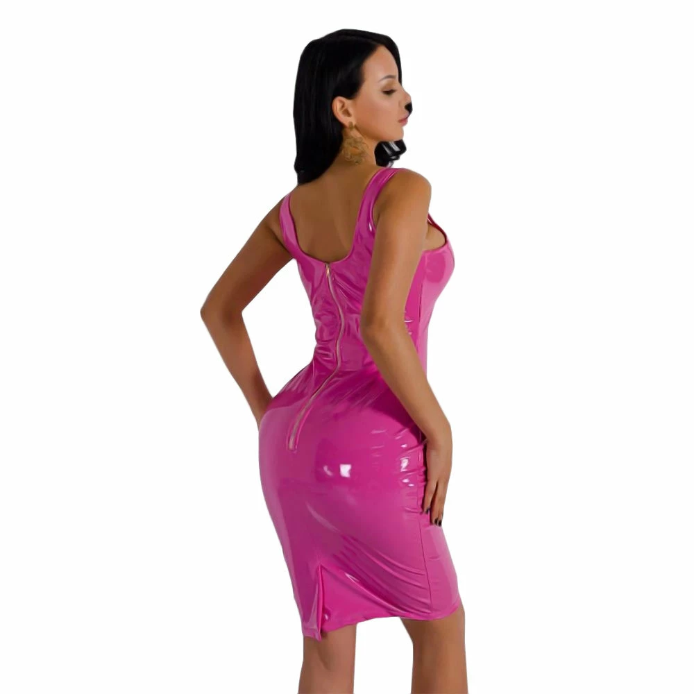 Be the solo girl wearing a pink party dress in a room full of little black dresses. The brightness of this color will make sure you draw the crowd’s attention to your beautiful face and hard-earned voluptuous body. Present yourself like that at the next party you will attend and don’t forget to don this Classy and Fun Pink Vinyl Dress.
