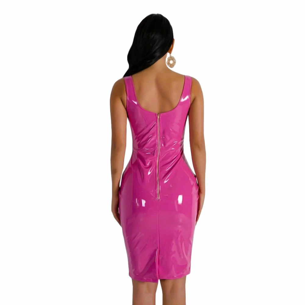Don’t just admire this gorgeous dress! Add this Classy and Fun Pink Vinyl Dress to your cart today!