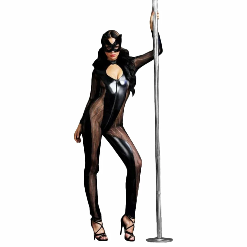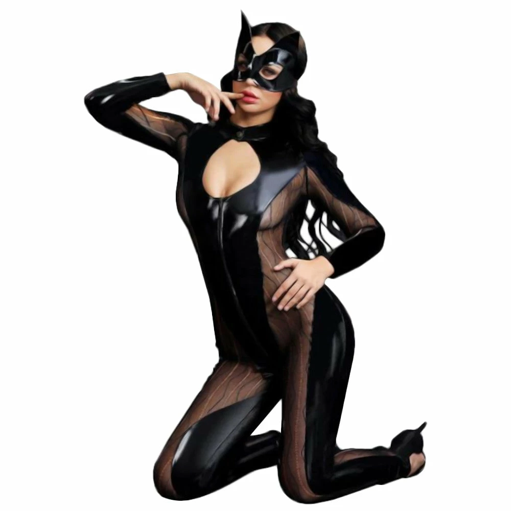 This Catwoman suit features sheer mesh with faux leather panels, so you’ve got to wear your confidence along with it to strut it like a pro. Although it’s body-revealing, the leather panel covers your most intimate parts. It’s a no-brainer to go commando when you put this bodysuit on for that seamless, gorgeous look.