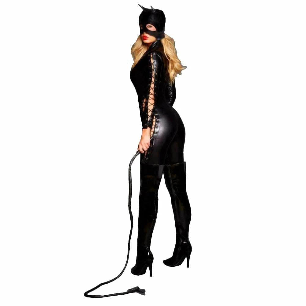 Ready to slay like a feline as you dominate your partner in bed? Grab this Strict Mistress Catwoman Catsuit and make it happen. This catsuit is everything you need and more when portraying the role of a strict mistress. It is made of faux leather, a material known to be sexy due to various reasons. The smooth texture, distinct scent, and expected toughness and strength are some of the reasons why some people find anything of this material erotic.