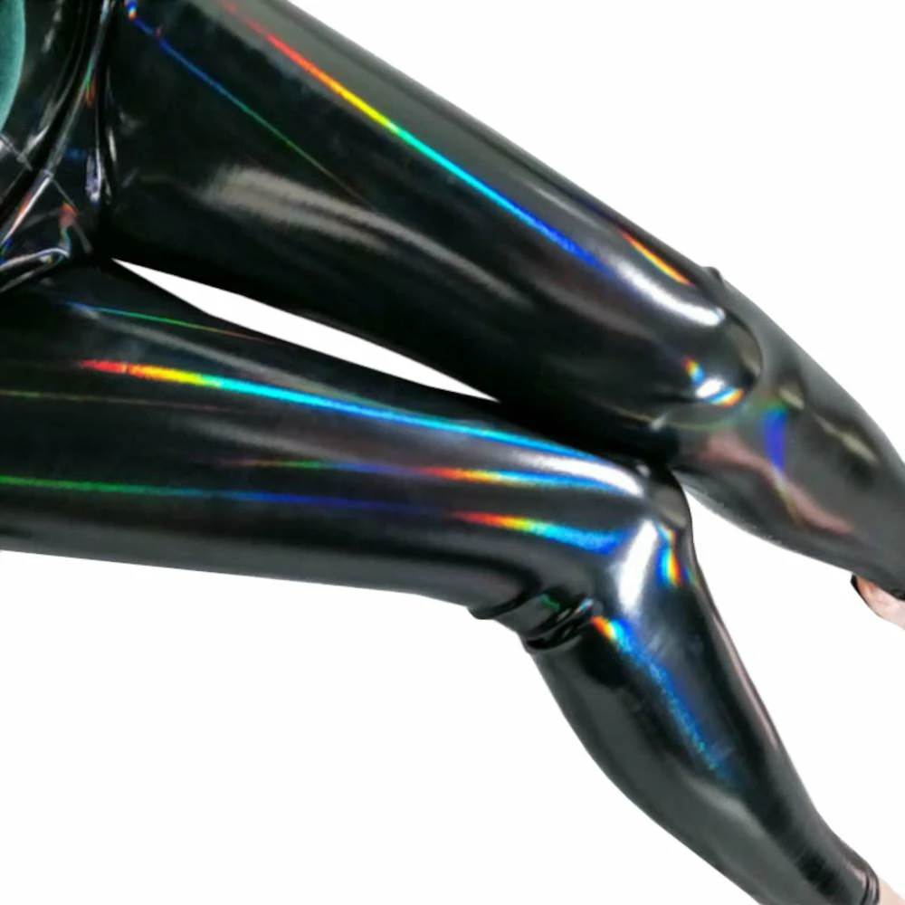 Like any skintight, glossy outfit, these leggings can’t be worn like how you do them with your other tight pants. You have to prep your thighs before putting them on for effortless wear and to prevent creasing. To do that, you have to lubricate your legs with water-based lube or sprinkle them with talc powder. Carefully slide your legs into the leggings, then pull and stretch them out until the waistline sits on your waist.