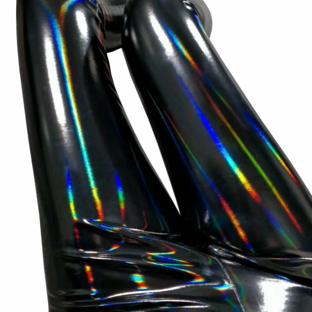 Like regular leggings, these pants are tight. They hug your waist, showing off your voluptuous tush. They also cover your legs, outlining the shape of your thighs. But unlike the usual leggings that have a matte finish, this one is glossy. This look levels up your style, making you look hotter with any top that you wear.