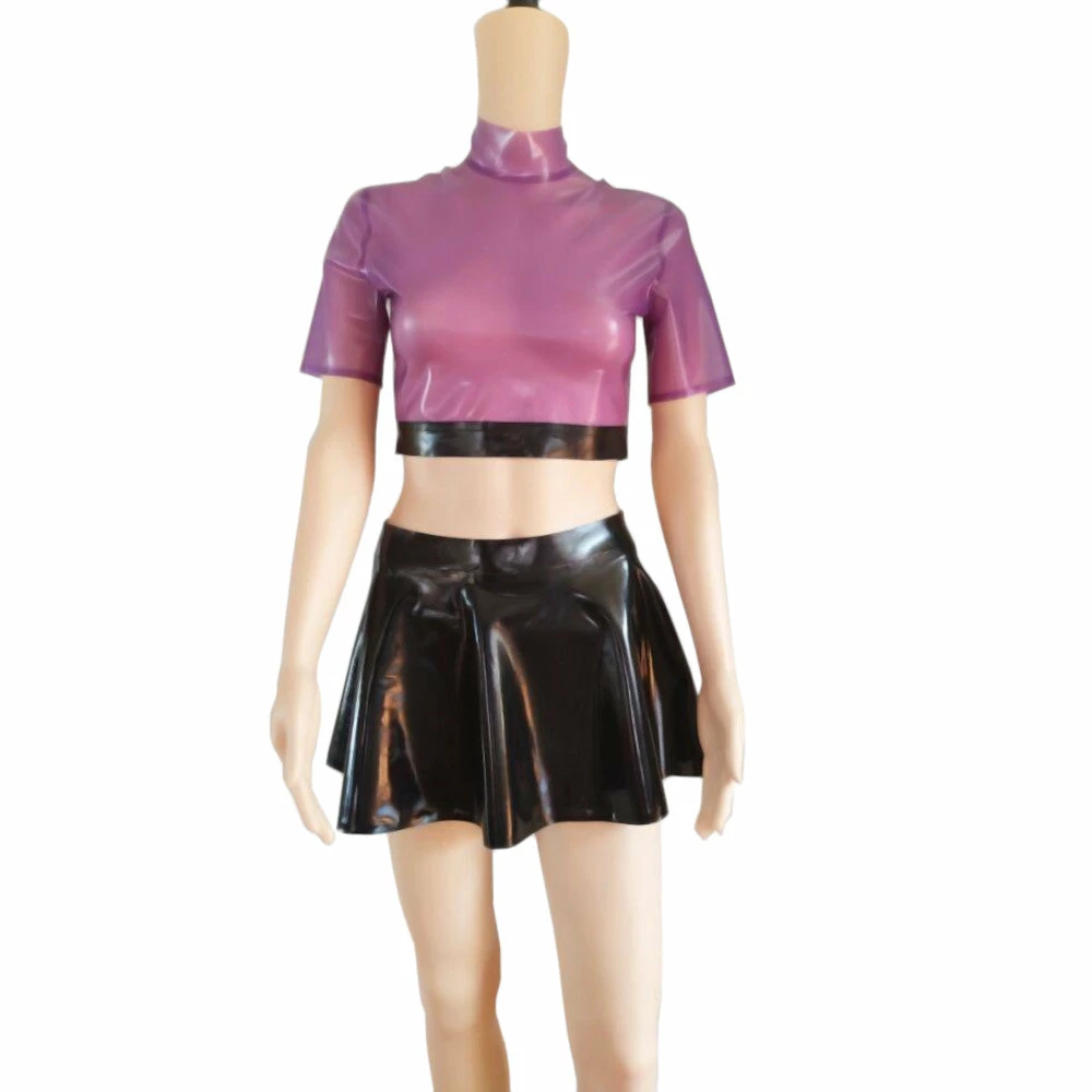 All of a sudden, you got a chance to party again. Don’t waste that opportunity, girl! Make sure to relive your party girl days with the perfect get-up like this Purple Top and Black Skirt Latex Outfit.