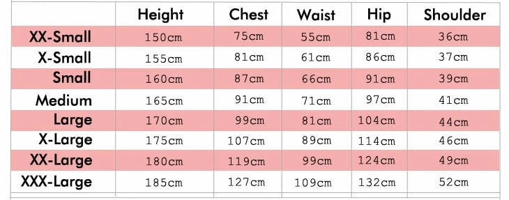 | Sizes | XXS, XS, S, M, L, XL, XXL, XXXL- Refer to the size chart for the measurements |