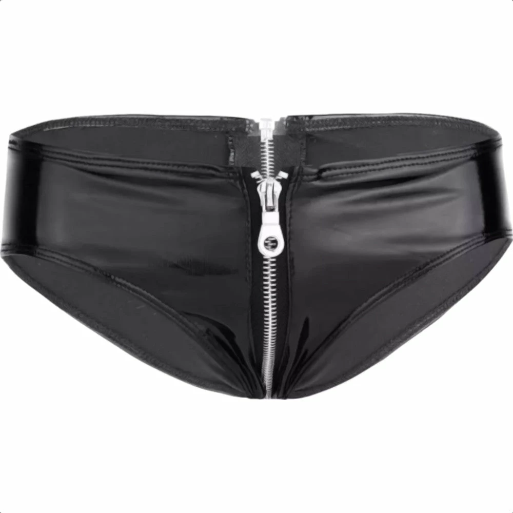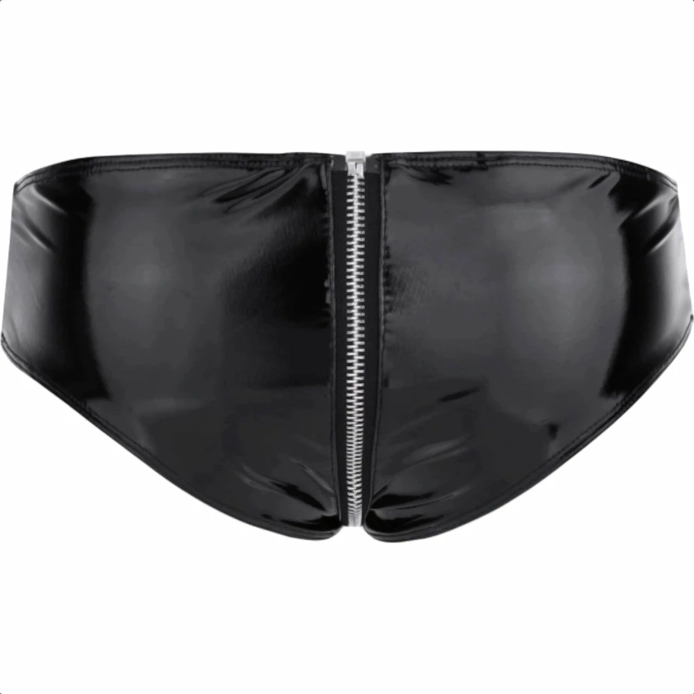 Erotic and glossy, this underwear will highlight your sexy back. The waistline hugs your waist, capturing your bootylicious asset. Meanwhile, the leg holes accentuate the length and shape of your curvy thighs, making you look more irresistible. Then, there’s the zipper that goes between your legs. The zipper makes it much easier to wear since you don’t need to pull it up until it reaches your waist. You only have to slip your thighs into the leg holes and zip them up! And oh, be sure to lubricate your intimate area with water-based lubricant for effortless wear and avoiding creasing.