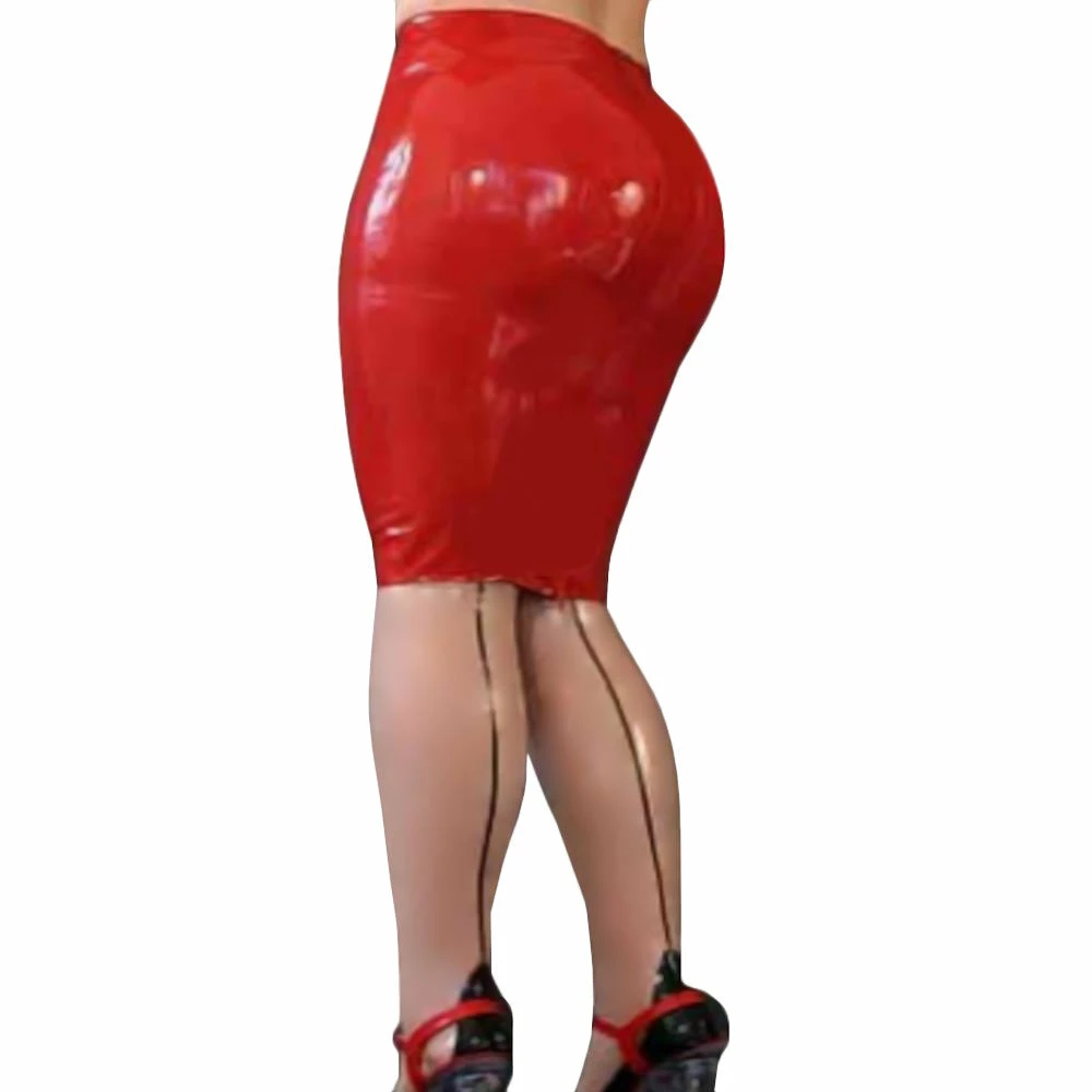 It is a flattering pencil-cut knee-length skirt. This stunning red latex garment is with separating zipper that will make it easy to put on. It will also emphasize your curves as it will hug your shapely waist and thighs. Strut it with grace and ooze with sex appeal! Wear a black mesh stocking under it and put on your red or black stilettos to match.
