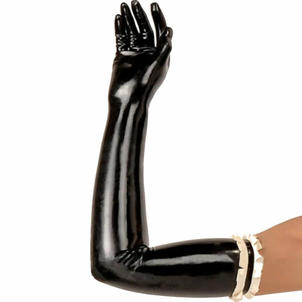 Amp up your style and your oozing sex appeal with these Ruffled Long Black Latex Gloves. Add them to your cart now!