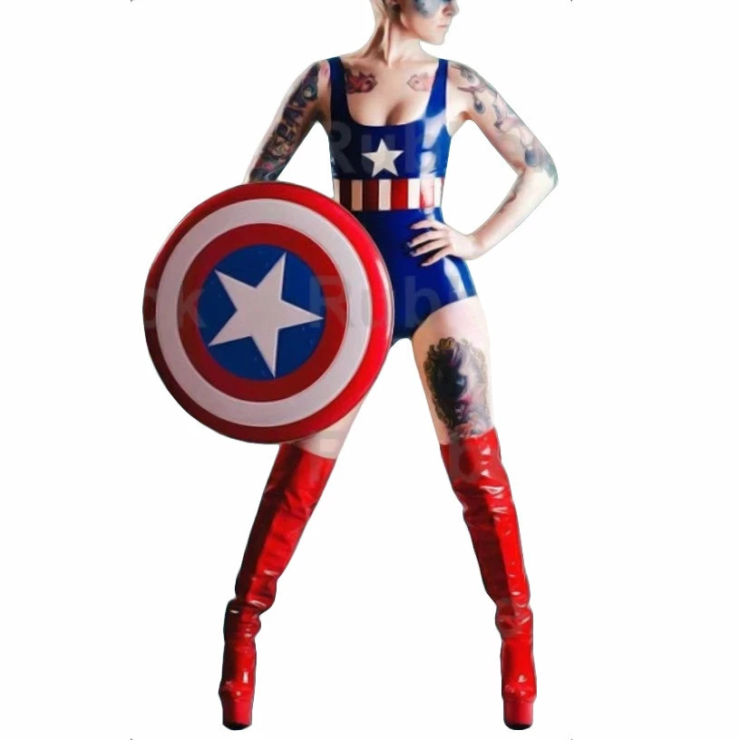 Made from latex base material is this bodysuit like no other. It is not only sleek and shiny, but it also conforms to the body once worn. It accentuates all the curves you got, enhancing your voluptuousness into tenfolds. And since it is tight-fitting, you can rest assured to be getting your ass and boobies a lift, making them look plumper and more inviting. It comes in different colors too! It doesn’t matter if you want to ditch the OG shade of this Marvel hero’s uniform. As long as it got the star sign in it, you’ll still be able to rock it! Match it with your pair of knee-high red boots and Captain America’s infamous disc-shaped shield. Once you got all these three, you are now ready to take on the lead.